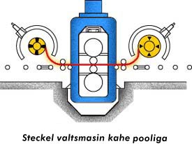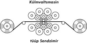 Hot rolling can also be performed using a “Steckel” rolling mill, where the steel sheet is rolled back and forth onto coils located on both sides of the mill. The coils are built into a gas furnace so that the material does not cool during the process. The steel sheet being processed can reach lengths of up to 1000 meters. After rolling in the Steckel mill, the hot strip is wound onto a coil.