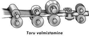 The two edges of the sheet are pressed together and welded using longitudinal welding techniques to form a pipe, which is then cut to the required length. Larger pipes are bent from the cut plate and welded similarly.